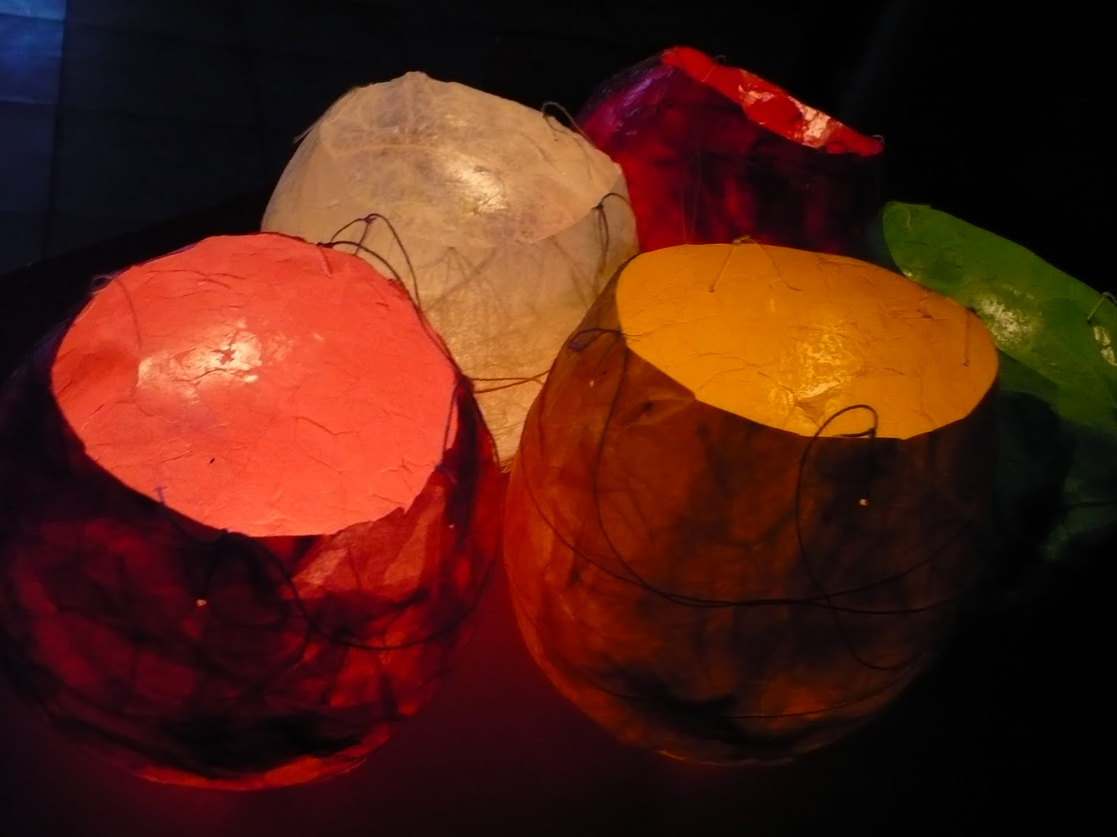 Els han fet tot omplint un globus amb papers de seda encolats. Un cop sec el paper, només han hagut de punxar el globus i col·locar-hi una espelmeta i uns cordills per penjar-los del sostre. Fins hi tot els han encès per veure com eren de macos!