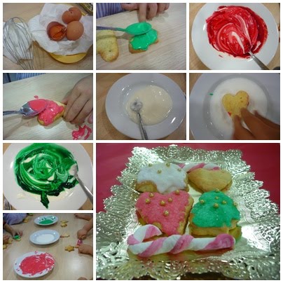 Primer van el·laborar la massa i li van donar forma amb uns talladors especials amb forma de cor, estrella i avet. Les señores de la cuina molt amablement les van coure al forn.