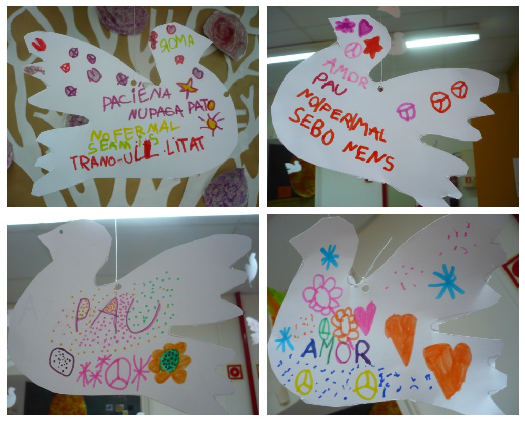 Amb aquests missatges de PACIÈNCIA, TRANQUIL·LITAT, SER AMICS, NO FER MAL, AMOR,... els nens i nenes d'Educació Infantil us conviden a viure en pau i a treballar tots junts per un món millor!