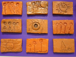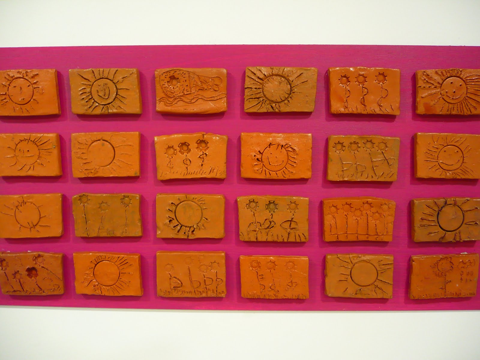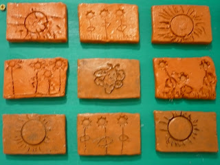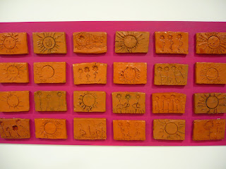 Les peces de fang les vàrem decorar tot dibuixant amb pals i estampant taps de pega i de retoladors!