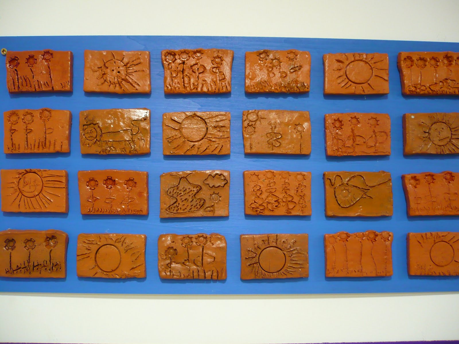 A l'escola tenim molta sort, i és que un pare que és terrissaire ens va venir a explicar la seva feina i ens va regalar una peça de fang a cada nen i nena d'Educació Infantil. Nosaltres vàrem decidir fer un mosaic de petites rajoles i un cop les vam tenir fetes, el terrissaire ens les va coure al forn.