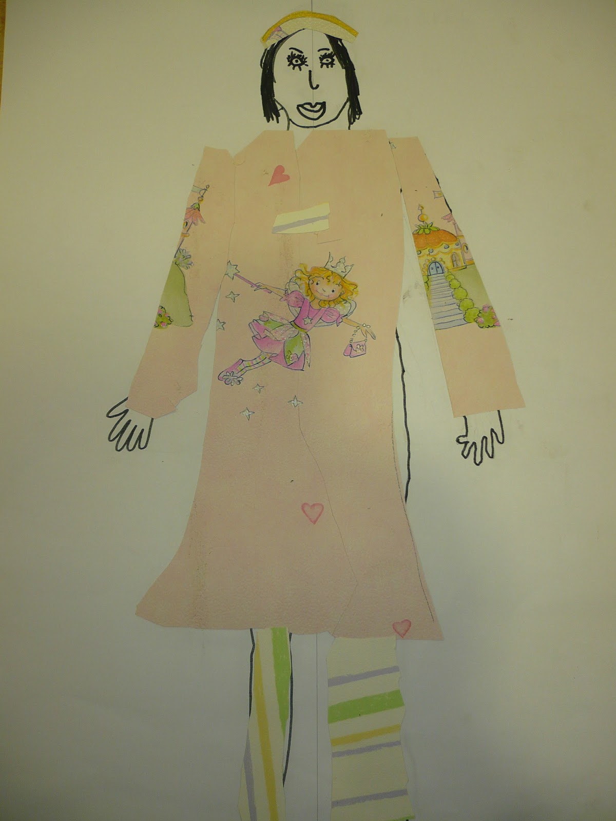Ha costat un mica, perquè requeria molta observació i molta paciència, però estic contenta amb els resultats, tant, que per acabar l'activitat hem repartit papers de colors (extrets de catàlegs vells d'una botiga de pintures) i els nens i nenes han vestit els seus personatges.