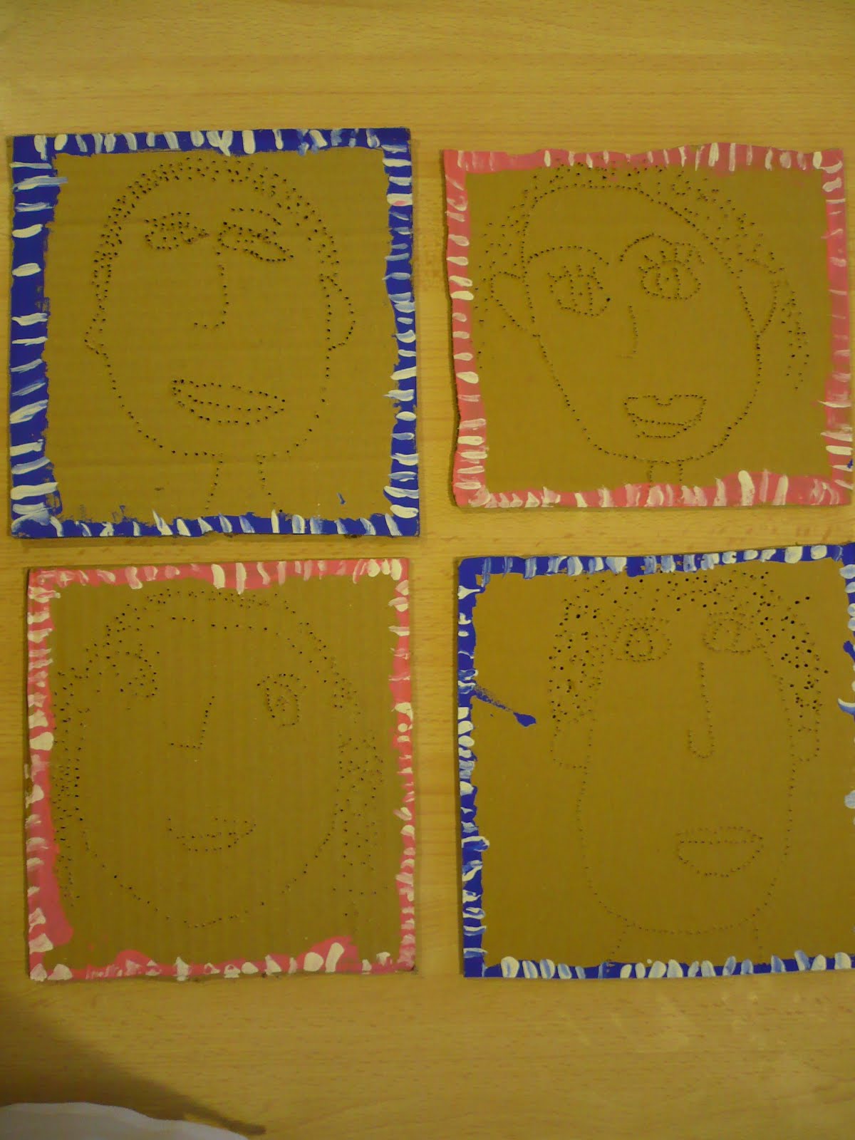 Consisitia en fer un dibuix sobre cartró i després punxar al damunt del dibuix, de manera que aquest quedés marcat al revers del cartró.
