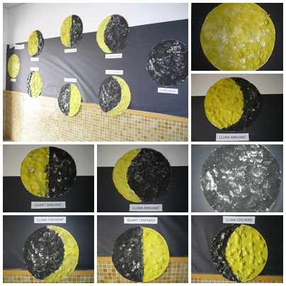 3.- Amb pintura groga i negra van acolorir la lluna. Per grups, van recrear la forma de les diferents fases.