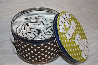 Amb una llauna de galetes, paper decorat, cartró pluma i imans mireu quin regal hem creat. Un joc d'aparaulats per poder-se deixar missatges a la nevera.