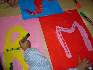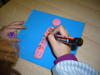 Primer van triar-ne una per pintar-la sobre una làmina. Un cop seca, la van decorar amb retoladors permanents.