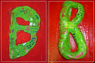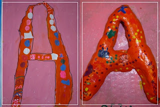 Després van fer la mateixa lletra amb fang i la van pintar amb els mateixos colors que la lletra de paper. I, finalment, també la van decorar amb retoladors permanents.