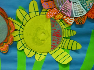 Després de veure les fantàstiques flors del bloc Plastiquem fetes amb CD's, els nens i nenes de 5 anys s'han atrevit a fer-ne unes més senzilletes, però prou resultones!