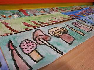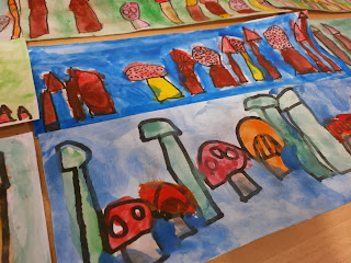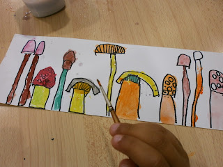 I finalment, hem dibuixat i pintat bolets, tot inspirant-nos en els treballs de l'Espe del bloc "Plastiquem" (us el recomanem!!!):
