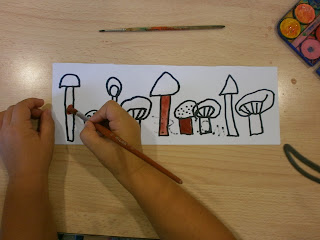 I finalment, hem dibuixat i pintat bolets, tot inspirant-nos en els treballs de l'Espe del bloc "Plastiquem" (us el recomanem!!!):