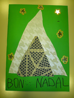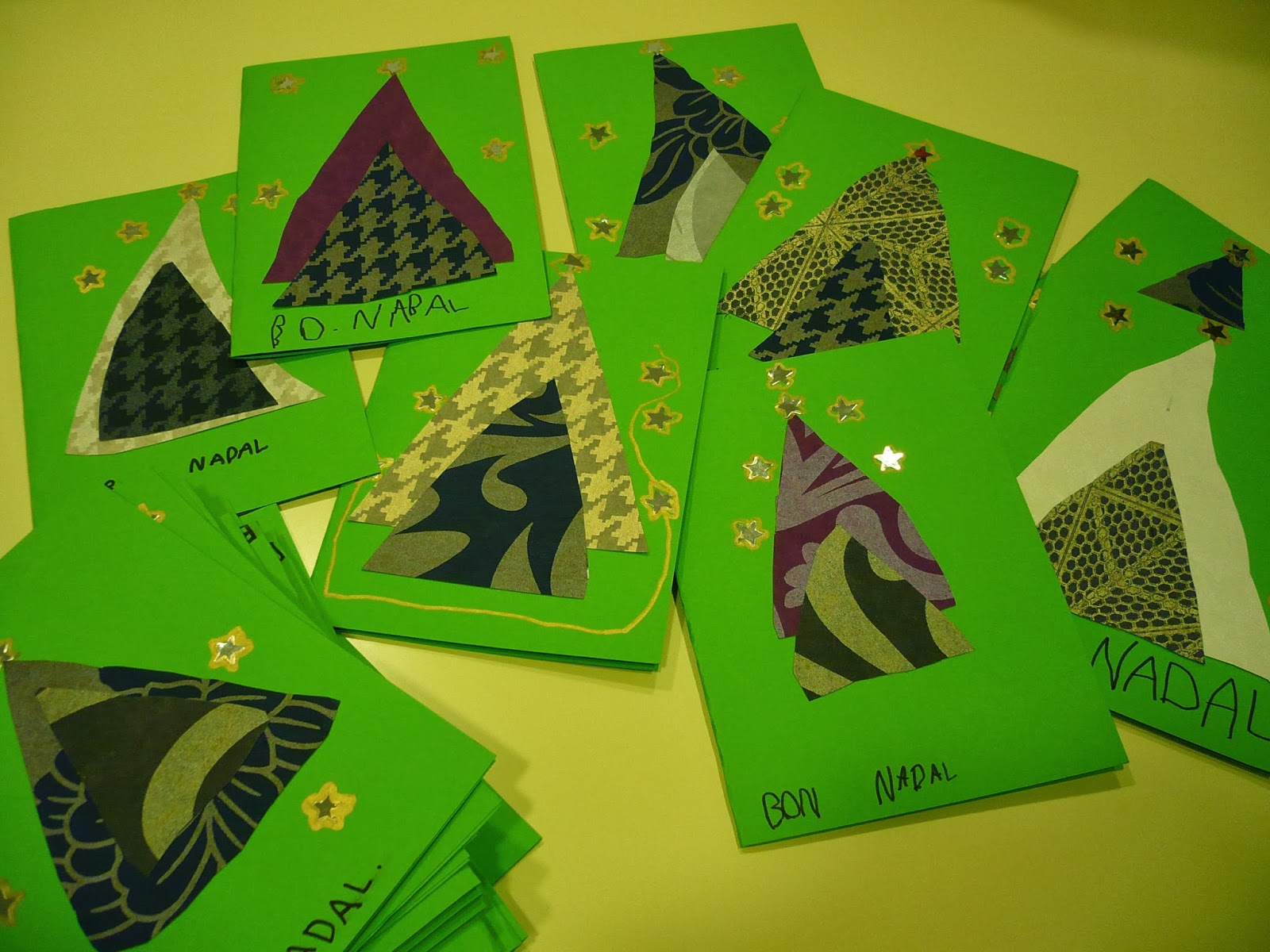 Aquestes són les postals que els nens i nenes de 5 anys han preparat per felicitar el Nadal a casa seva. A dintre hi han enganxat el poema de Nadal.