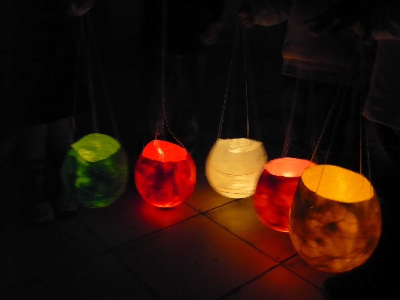 Els han fet tot omplint un globus amb papers de seda encolats. Un cop sec el paper, només han hagut de punxar el globus i col·locar-hi una espelmeta i uns cordills per penjar-los del sostre. Fins hi tot els han encès per veure com eren de macos!
